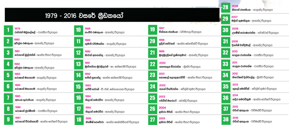 1990 දක්වාම කොළඹට කේන්ද්රගතවු වසරේ පාසල් ක්රිකට් ක්රීඩකයා සම්මානය හාපුරා කියා කොළඹින් බැහැරට ගෙන ගියේ 1991 දී කටුගස්තොට ශාන්ත අන්තෝනි විද්යාලයේ මුත්තයියා මුරලිදරන්ය. ටෙස්ට් හා එක්දින පිටියේ වැඩිම කඩුලුලාභියා වන මුරලි ක්රිකට් ලෝක කුසලාන ශූරයන් (1996) සහ අනුශූරයන් (2007 - 11) වූ ශ්රී ලංකා කණ්ඩායම නියෝජනය කළ එකම ක්රීඩකයාද වෙයි. එමෙන්ම මෙකී සම්මානය හිමිකර ගෙන ලෝක කුසලාන අවසන් මහා තරග තුනකට ක්රීඩා කළ එකම ක්රීඩකයා ද වෙයි.