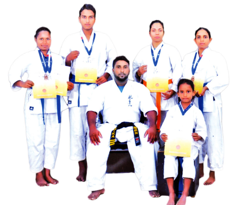 ඉදිරිපෙළ දකුණේ සිට - ජනනි සඳුනිකා (රන් පදක්කම්), ප්රධාන උපදේශක - ෂිහාන් ලසන්ත කලුආරච්චි (4 වන කලු පටි ශ්රේණිය), පුහුණුකරු - සෙන්සේ විශ්මිත දසනායක (3 වන කලුපටි ශ්රේණිය)