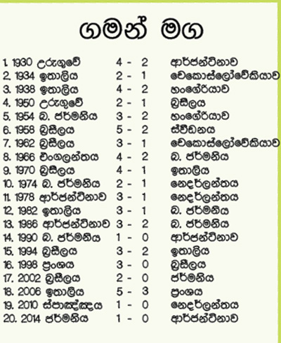 ගෝල් පාපන්දු ක්රීඩාවේ මිල කළ නොහැකිම වචනය බවට සාධක ඇවැසි නැත. ඕනෑම දෙයකට ආරම්භයක් තිබිය යුතුවා සේම පුරෝගාමියකු ද සිටිය යුතුය. 20 වැනි පාපන්දු ලෝක කුසලානය නිමාවන විට කොපමණ ගෝල් සංඛ්යාවක් වාර්තා වී තිබේද? සමස්ත පාපන්දු ලෝක කුසලානවල වාර්තා වී ඇති ගෝල සංඛ්යාව 2379 කි.