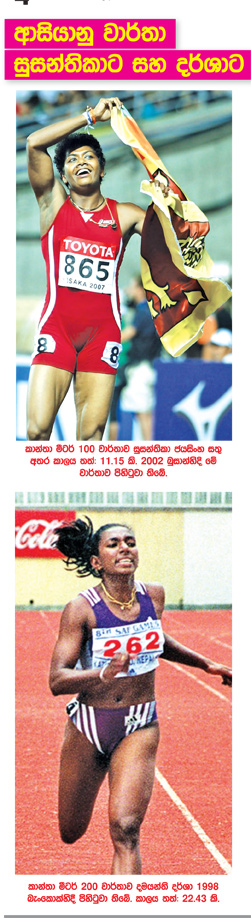 අවසන් වරට කේවල ආසියානු පදක්කමක් ශ්රී ලංකාවට හිමි වී ඇත්තේ සුසන්තිකා ජයසිංහ 2006 දි මීටර් 100 රිදී සහ මීටර් 200 ඉසව්වට දිනා ගත් ලෝකඩ පදක්කම් දෙක පමණි.