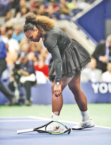 යළිත් තරගය ඇරඹුණි. එහිදී සෙරිනා වෙතින් අතපසුවීම් කිහිපයක්ම සිදු විය. මින් ඇය තවත් කෝපයට පත් වූවාය. එහි ප්රතිඵලය වූයේ සිය ටෙනිස් පිත්ත පොළොවේ ගැසීමට ඇය ක්රියා කිරීමයි.