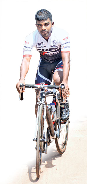 අපේ ගමේ පාපැදි රේස් පදින අයියා කෙනෙක් ඉන්නවා චන්දන කඳනාරච්චි කියලා. මම 11 වසරේ ඉගෙන ගන්න කොට ම මේ අයියාව හම්බ වුණා. මම කලින් මැරතන් දිව්වා. ඒ අයියා රේස් පදින්න ආසද කියලා ඇහුවම මම කැමැති වුණා. එයා තමයි බයිසිකලයකුයි, සපත්තුයි අරන් දුන්නේ. අදටත් ඒකේ වෙනසක් නෑ. ඒ අයියාගේ උපදෙස් එක්ක තමයි රේස් පදින්නේ. පුහුණුකරු විදියටත් එයා තමයි හැම දෙයක් ම බලන්නේ. මීට අවුරුදු 12කට කලින් තමයි මම රේස් පදින්න යොමු වුණේ.