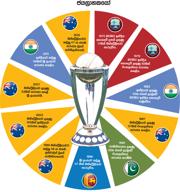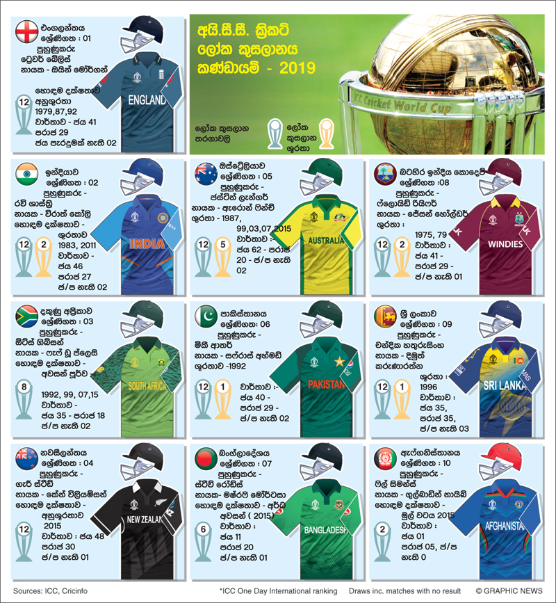 එහිදී ඔවුන්ගේ පොදු මතයක් ඇත. එනම් සත්කාරක එංගලන්තය සහ ඉන්දියාව මෙවර ලෝක ශුරයන්වීමට ඉදිරියෙන්ම සිටින බවය. ඒ පිළිබඳ පුදුම වීමට දෙයකුත් නැත. එනම් මේ දෙරට වත්මන් අන්තර්ජාතික ක්රිකට් සභාවේ (අයි.සී.සී.) එක්දින කණ්ඩායම් ශ්රේණිගත කිරීමට අනුව මුල් ස්ථාන හිමි කරගෙන තිබෙන බැවිනි.
