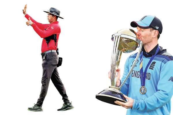 එංගලන්තය සහ නවසීලන්තය අතර පැවැති දොළොස්වැනි ක්රිකට් ලෝක කුසලාන අවසන් මහා තරගය උඩුයටි කුරු කරමින් එංගලන්තයට ලැබුණු වාසි සහගත තීරණ රැසක් පිළිබඳ මේ වන විට දැඩි කතා බහක් මතුව තිබේ. තරගයේ අවසන් ඕවරයේ 04 වැනි පන්දුවේදී බෙන් ස්ටෝක්ස්ගේ පිත්තේ වැදී හතරේ සීමාව කරා ගිය පන්දුවට ප්රධාන විනිසුරු ලෙස කටයුතු කළ ධර්මසේන ලකුණු හයක් ප්රදානය කළේය. ධ්ඛ්ඛ් විනිසුරු පුහුණු කිරීමේ කළමනාකරු (2015 දක්වා) සයිමන් ටෝෆල් ප්රකාශ කරන්නේ ධර්මසේනගේ තීරණය වැරැදි බවත්, එංගලන්තයට හිමි විය යුත්තේ ලකුණු හයක් නොව ලකුණු පහක් බවයි.