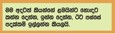 දැන් මිනිස්සු බලයි මොකක්ද මේ බඩ පිරෙන්න හොඳට කන්න දෙන්න කියන්නේ කියලා?