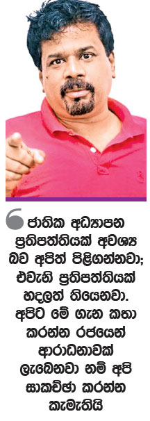 අපිත් පිළිගන්නවා ජාතික අධ්යාපන ප්රතිපත්තියක් අවශ්ය බව. අපිත් එවැනි ප්රතිපත්තියක් හදලා තිබෙනවා. අපිට මේ ගැන කථා කරන්න රජයෙන් ආරාධනාවක් ලැබෙනවා නම් අපි සාකච්ඡා කරන්න කැමැතියි.