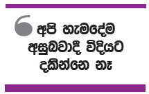 අපි කවුරුත් විවේචනය කරන්නෙ නෑ. අපි ඇත්ත පෙන්වා දෙනවා. ඒක නීරස වෙන්න පුළුවන්. ඒ වගේම අපි මේ රට ගොඩනඟන මාවතත් කියනවා. නමුත් අපි කියන කරන දෙයින් වඩාත් සමාජ කතාබහට ලක්වෙන්නෙ අපි අඩුපාඩු පෙන්වා දෙනවා කියන කාරණය පමණයි. ඒකත් අපි විවේචකයෝ විදියට තමයි පෙන්වන්නෙ.