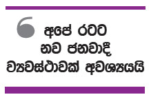 ඔව්. දැන් තියෙන අපේ ව්යවස්ථාව අවස්ථා 19 කදී සංශෝධනය වී තිබෙනවා. මේ හැම සංශෝධනයකම ගැබ්ව තිබෙන්නෙ ඒ මොහොතේ පාලනය හොබවපු පාලකයා ගේ වුවමනාවන් විතරයි. ජනතාවගේ වුවමනාවට ව්යවස්ථාව සංශෝධනය කර ඇති බවක් පෙනෙන්ට නෑ. මේ නිසා අපේ රටට නව ජනවාදී ව්යවස්ථාවක් අවශ්යයයි. ඒ සඳහා කටයුතු කරන ඕනෑම අයෙකු සමඟ සාකච්ඡා කරන්න සහය දෙන්න අපි සූදානම්.