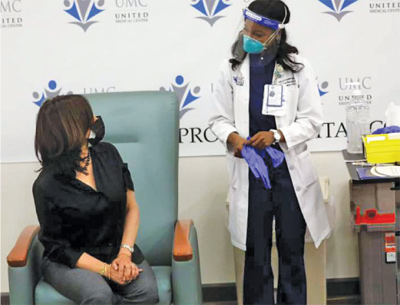 කමලා හැරිස් කොවිඩ් එන්නත ගනී