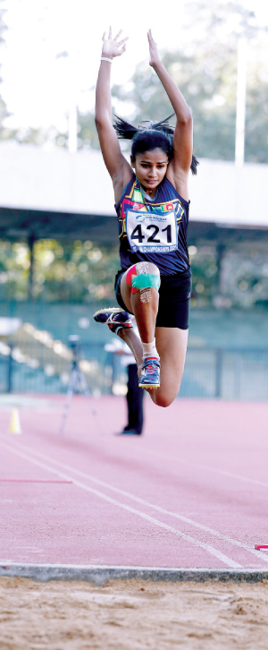 පනස් පස් වැනි ජාතික කනිෂ්ඨ මලල ක්‍රීඩා තරගාවලියේ අවුරුදු විස්සෙන් පහළ බාලිකා තුන් පිම්ම මීටර් 13.20 ක දුරක් සටහන් කළ ඈ එකී වයස් කාණ්ඩයේ විදුෂා ලක්ෂානි සතුව තිබූ මීටර් 13.12 ක වාර්තාව ද අභිබවා ගියා ය.