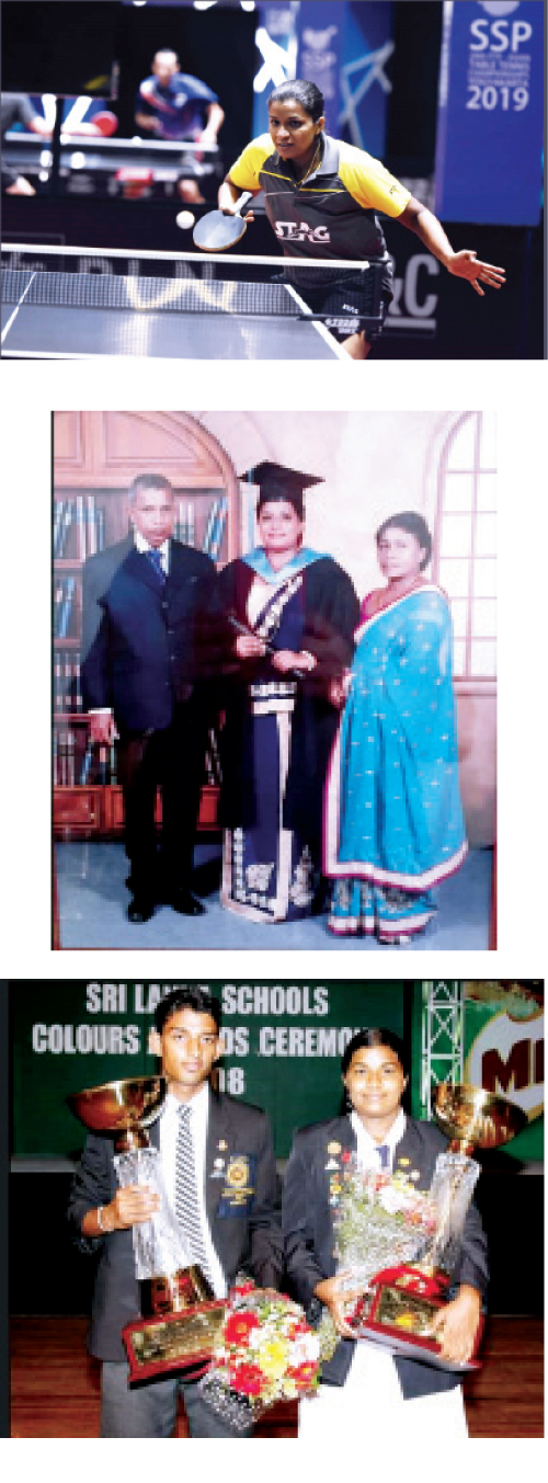 එහෙත් කුඩා වියේ සිටම තම වැඩිමල් සොයුරු ළහිරුගේ මේසපන්දු පිත්තට ඈ ඇළුම් කරන්නට විය. ඒ ආදරය කිසිවකුත් නොසිතූ ආකාරයට මෙරට අංක එකේ මේස පන්දු ක්‍රීඩිකාව බවට පත්කරනු ලැබිණි.