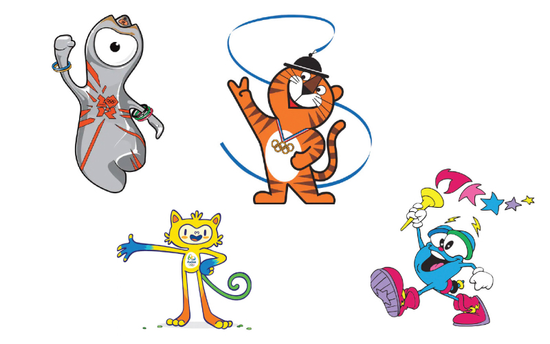 2012 ලන්ඩන් ඔලිම්පික් උළෙලේ සුරතල් සංකේතය ඇසක් සහිත කැමරාවක් සංකේත කරමින් නිර්මාණය විය. එය 'වෙන්ලොක්' යන නිල නාමයෙන් හැඳින්විණි. 2016 රියෝ ද ජැනෙයිරෝ ඔලිම්පික්හි සුරතල් සංකේතයෙන් ක්ෂීරපායි සතුන් නියෝජනය කෙරුණි. 'විනිසියස්' නිල නාමයෙන් හැඳින්වුණු එය ලුසියානා 'එගුටි' සහ 'පාවුලෝ මුපෙට්' විසින් නිර් මාණය කරන ලදී.