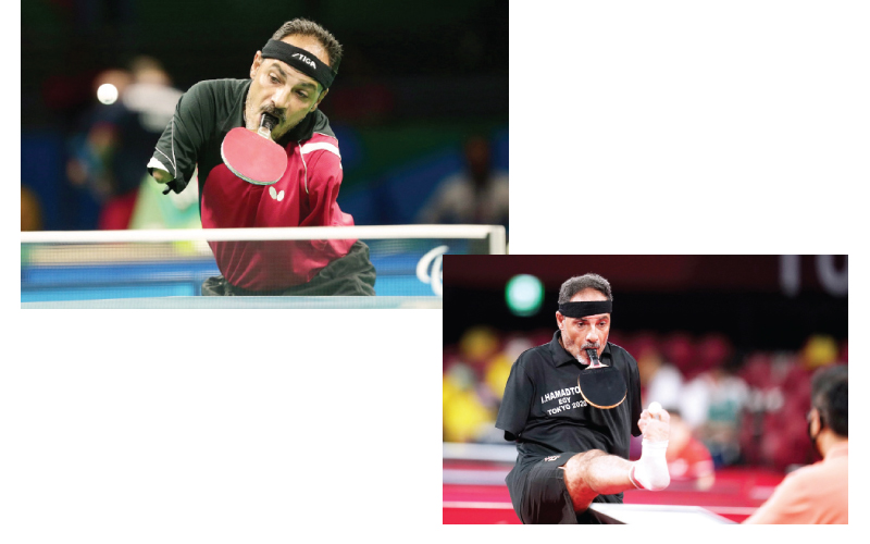 නමුත් අරුමය වූයේ ටෝකියෝ පැරාලිම්පික් ක්රීඩා උළෙලේ දී දෑතම අහිමි ක්රීඩකයකු මේස පන්දු තරගාවලියට සහභාගී වී සිටීම ය.