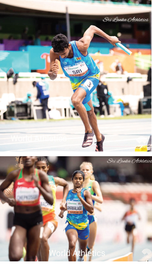 ඒ මීටර් 400 මිශ්ර සහාය දිවීමේ ඉසව්වට ය. ජාත්යන්තර මලල ක්රීඩා තරගාවලියක දී පළමු වරට මිශ්ර සහාය දිවීමේ තරගයකට සහභාගි වූ ශ්රී ලංකාව එහි පළමු අවස්ථාවේ දී ම අවසන් තරගයට සුදුසුකම් ලැබීම ද සැලකිය යුතු කරුණකි. මූලික වටයේ තරගයේ දී විනාඩි 3 .26.62 ක ට අදාළ තරගය නිමා කළ ශ්රී ලංකා ක්රීඩක ක්රීඩිකාවෝ අවසන් තරගයට එක්ව එහිදී විනාඩි 3 යි තත්පර 26.39 කින් තරගය නිමා කිරීමට සමත් වූ හ. එහෙත් එකී කාලය ගැළපුණේ සමස්ත තරගයේ හත් වැනි ස්ථානයේ ශ්රේණිගත වන්නට ය.