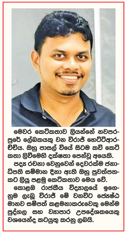 වටේ හිටපු මිනිස්සු එක එක වචන වලින් ඒ අහිංසක ජීවිතේට ලන්සු තියත්දි මට ඇතිවුණේ කෝපයක් වගේම කළකිරීමක්. හැමෝගෙම ජීවිතවල නොදන්න පැති, නොදන්න කතා ගොඩක් තියෙනවා. හැම මනුස්සයම තමන්ට ආවේණික ප්රශ්න ගොඩකට මැදි වෙලා ඉන්නෙ. හැබැයි තමන්ට හිතෙන තමන්ගෙ මතයෙන් අනුන්ගෙ ජීවිත ගැන අල්පමාත්රයක් නොදන්න උන් හරි පුදුම විදියට චරිත සහතික දෙනවා.