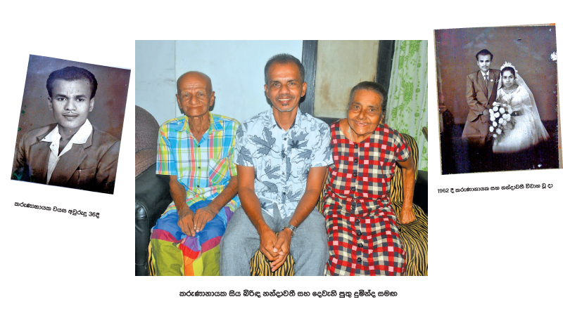 ඔහුගේ අතගත් ඈ නමින් කේ.ඩී නන්දාවතී නම් වූවාය. විවාහයෙන් පසු ඔවුන්ට පිරිමි දරුවන් තිදෙනකු හා එක් දියණියක ලැබිණි. ඔවුන් ජනප්‍රිය පාසල්වලට යවමින් හොඳින් ඉගැන් වූ අතර මේ වන විට ඔවුහු කෝටිපතියෝය. ලොකු පුතා ව්‍යාපාරිකයෙකි. දෙවැනි පුතා වාහන වෙළෙඳාමේ නිරත වන අතර තෙවැනි පුතා ටොයෝටා සමාගමේ උසස් නිලධාරියෙකි. මුණුබුරු මිනිබිරියන් විසි දෙනකුගේ මුත්තණුවන් හා මිත්තණිය වන කරණානායක යුවල අදත් ආදරයෙන් සිටිනු එහි ගිය අපට දැකගත හැකි විය.