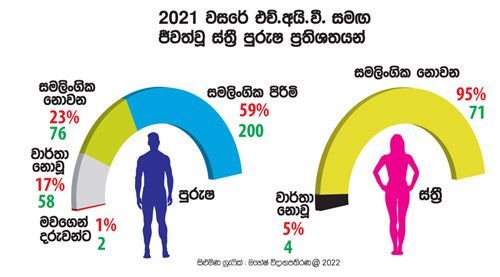පිරිමි සහ පිරිමි සමලිංගික සබඳතා ඇති අය අතර එච්. අයි. වී. වාර්තා වීමේ සැලකිය යුතු වර්ධනයක් ඇති බව සොයාගෙන ඇත. 2021 වර්ෂයේ එච්. අයි. වී. රෝග විනිශ්චයන් බොහොමයක් කාන්තාවන්ට වඩා පිරිමින් අතර වන අතර පිරිමි සහ ගැහැනු අනුපාතය 5:1 විය.