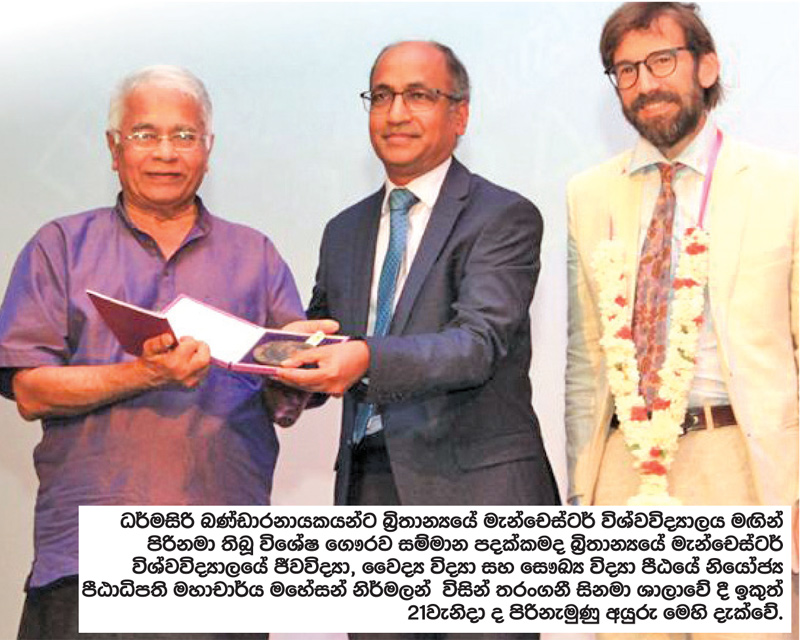 ඇත්තෙන්ම ධර්මසිරි බණ්ඩාරනායකයන් ජාති කුලමල ආගම් නොතැකූ වචනයේ පරිසමාප්ත අර්ථයෙන්ම මනුස්සයකු (උසස් මනසක් ඇත්තා) වේ. මේ අදීන නිර්මාණකරුවා මෙරටට සම්පතකි. මෙවැනි කාලයක ඔහු වැනි දැවැන්තයකු මෙලෙස පුදනු ලැබීම සංවේදී සිතැති අප සැමගේ සතුටට හේතු වන්නකි.