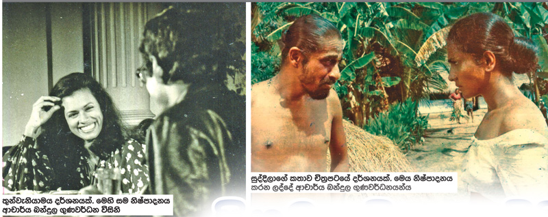 සයිමන් නවගත්තේගම විසින් රචිත නවකතාවක් ඇසුරින් නිර්මාණය වූ සුද්දිලගේ කතාව (1985) ධර්මසිරි අතින් නිමැවුණු තවත් විශිෂ්ට සිනමා නිර්මාණයකි. මෙය නිෂ්පාදනය කරන්නේ ආචාර්ය බන්දුල ගුණවර්ධන විසිනි. එය ද පුරුෂාධිපත්යක සමාජ ක්රමය තුළ ස්ත්රිය කායිකව මෙන්ම ලිංගිකව සූරාකෑමට ලක්වන ආකාරය විශද කරයි. ධර්මසිරිගේ අනෙකුත් සිනමා නිර්මාණ වන බව දුක සහ බව කර්ම (1997 තිරගත වූ) ගැන කතා කරන විට බව දුක ඔහුගේ පියාගේ බාල සොහොයුරා වන K.S පෙරේරා විසින් රචනා කරන ලද නවකතාවක් මත පදනම් වී ඇත. මෙහි නිෂ්පාදනය ඇම්. ආර්. ආබ්දීන් විසිනි. සැලකිය යුතු කරුණ නම් මෙම නවකතාවේ එක් චරිතයක් ධර්මසිරිගේ පියා වීමයි. මෙම සිනමා කෘතිය මඟින් ඔහු වැඩවසම් සමාජයේ කුලීනයන් විසින් කුල හීනයන් කායිකව මෙන්ම ලිංගිකව ද සූරාකනු ලබන ආකාරයත් එකී ඉරණමට ගොදුරු වන ස්ත්රිය විසින් එම පුරුෂාධිපත්යයික බලහත්කාරය ගෞරවණීයව බාර ගන්නා සංකීර්ණ මනෝභාවයත් විශද කරයි.